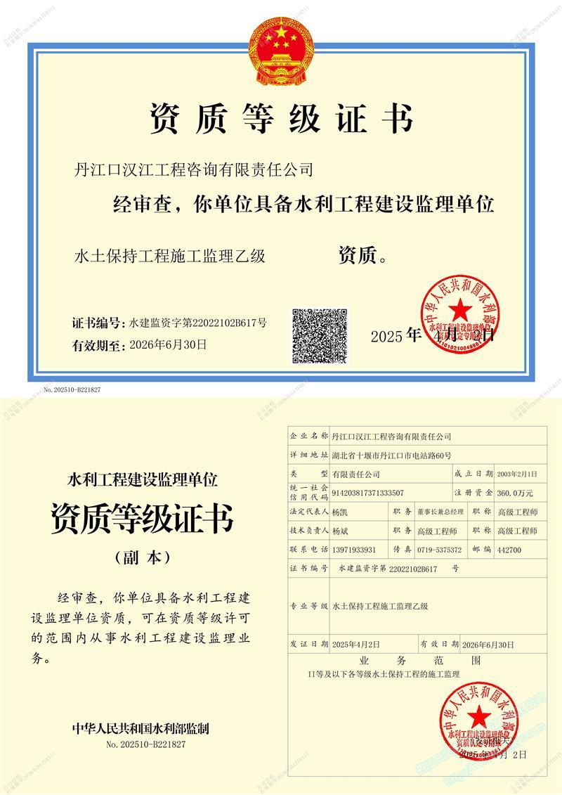 水利工程施工監(jiān)理甲級(jí)電子證照